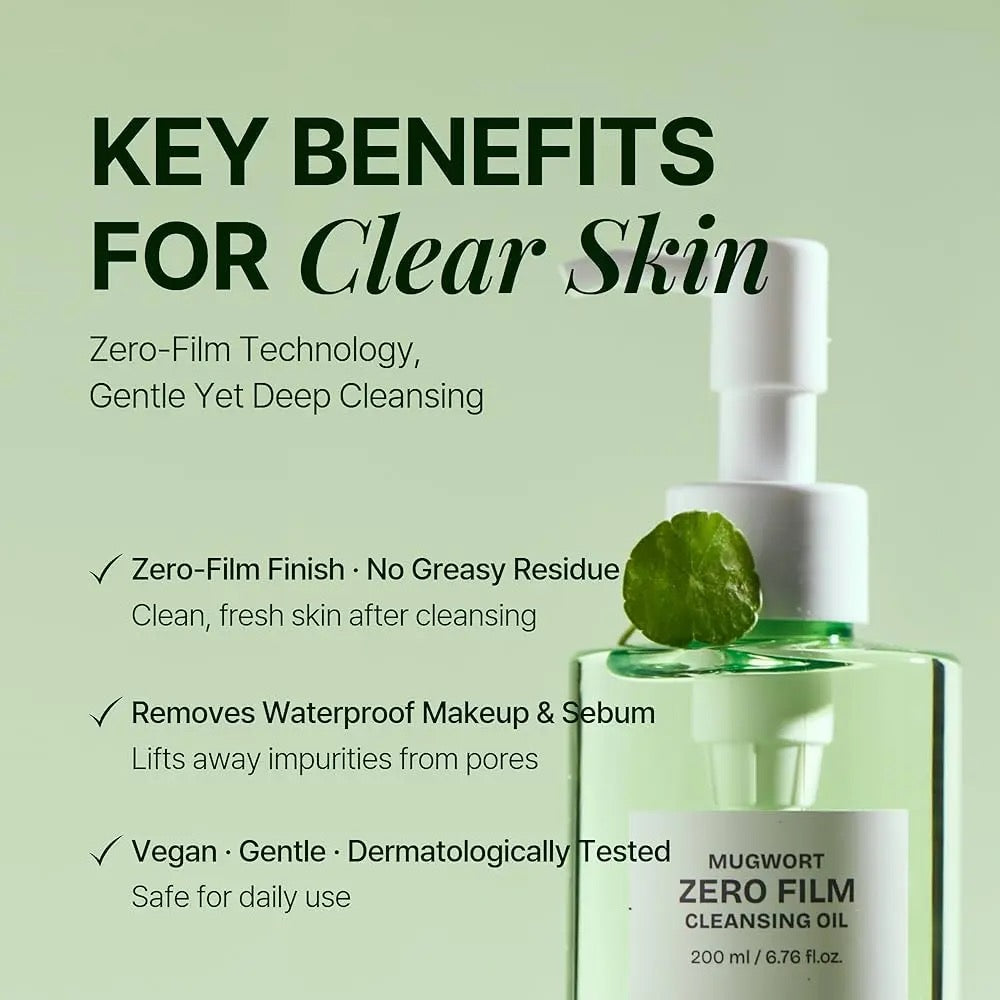 This vegan cleansing oil gently removes makeup, sunscreen, and impurities while helping soothe irritation and support the skin barrier. Formulated with Mugwort and Centella Asiatica Extract, it calms sensitive skin and reinforces barrier health during cleansing. Infused with plant-derived oils known for their anti-inflammatory properties, including Jojoba Seed Oil, the formula deeply replenishes moisture without clogging pores. The lightweight, watery texture emulsifies easily and rinses off clean, leaving the skin refreshed, soft, and residue-free. Dermatologically tested, it is suitable for sensitive and acne-prone skin.