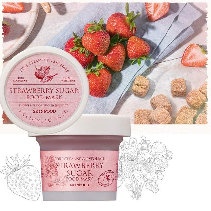 Achieve a smoother, clearer complexion with the Skinfood Strawberry Sugar Food Mask. This gentle exfoliating mask combines mineral-rich ingredients with strawberry seeds, strawberry seed oil, and BHA to deeply cleanse pores and sweep away dead skin cells. The creamy, oil-infused texture spreads effortlessly over the skin, leaving it fresh, purified, and lightly scented with natural strawberry sweetness. Perfect for restoring softness and radiance without irritation.
